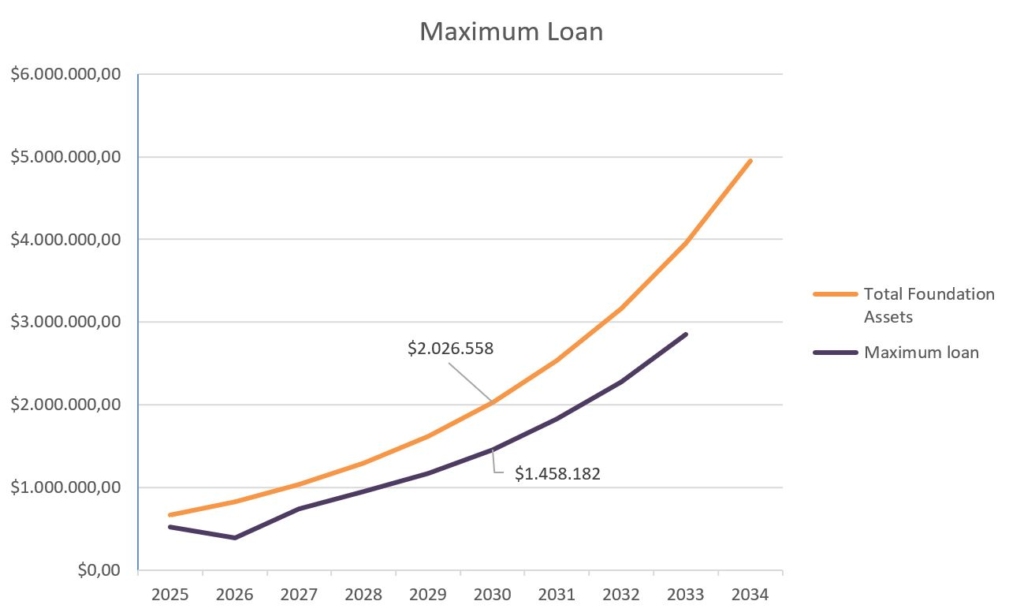 Example: The maximum possible loan in 2030 would be in our example USD 1.458.182.